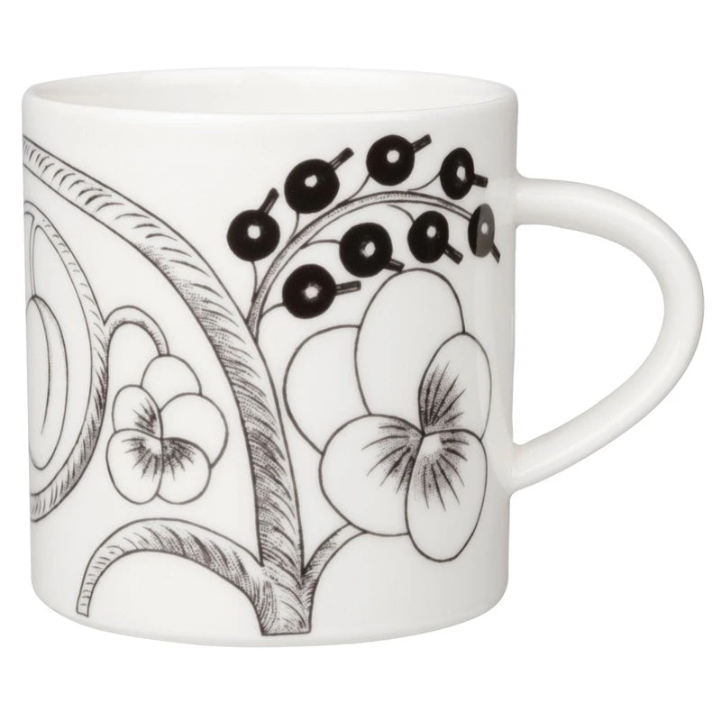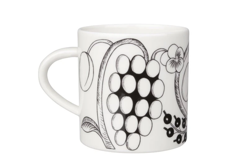 Die Tasse Paratiisi von Arabia ziert ein schwarz-weißes Motiv, das dem üppigen Blumenmuster eine klare grafische Note verleiht.