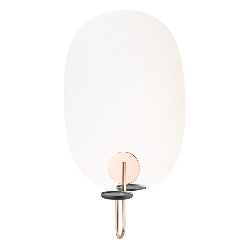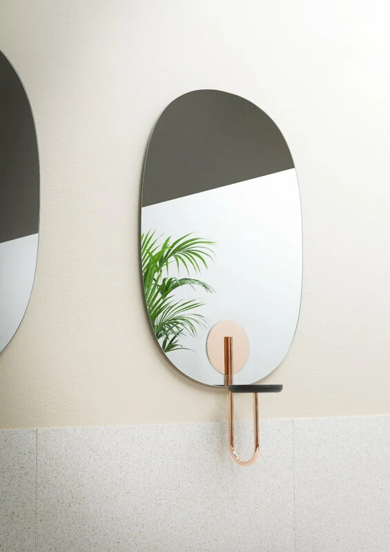 Cigales von Miniforms fungiert nicht nur als Spiegel, sondern auch als elegantes, minimalistisches Aufbewahrungsmöbel für verschiedene kleine Gegenstände und Kostbarkeiten. Auf der runden Ablage, die mit einem dicken, kupferfarbenen Stahlrohr am Spiegel befestigt ist, finden Kosmetika, Schmuck und Grünpflanzen Platz. Der von Paolo Cappello entworfene Cigales-Wandspiegel eignet sich für den Flur, das Ankleidezimmer oder das Wohnzimmer und bringt auch in öffentliche Räume eine angenehme Frische.