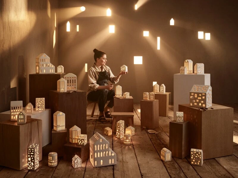 Die Urbania-Laternen von Kähler stellen eine Vielzahl von Gebäuden dar, von Hochhäusern bis hin zu berühmten Wahrzeichen, und bieten eine moderne Alternative zu den traditionellen Laternen in Hausform. Jede der von Mette Bache und Barbara Bendix Becker entworfenen Keramiklaternen ist mit handgeschnitzten Fenstern versehen, die der Laterne nicht nur ein interessantes, unverwechselbares Aussehen verleihen, sondern auch dafür sorgen, dass der warme Schein eines Teelichts schöne Lichtmuster um die Laterne wirft. Wählen Sie Ihre Lieblingslaterne aus oder sammeln Sie die gesamte Serie, um eine ganze Stadt aus leuchtenden Gebäuden zu erschaffen!