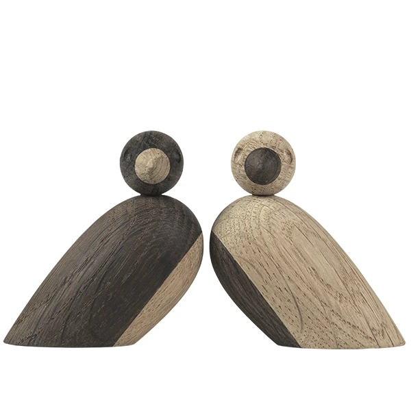 Das Set aus zwei Spatzen von Kay Bojesen aus Natureiche und Räuchereiche ist eine witzige Ergänzung für jede Einrichtung. Die niedlichen Vögel haben einen Magneten im Inneren, mit dem sie an dem Brett befestigt werden können, das in dem Set aus sieben bunten Buchensperlingen enthalten ist.