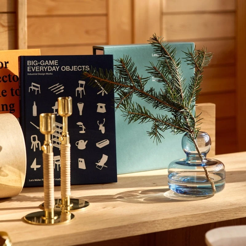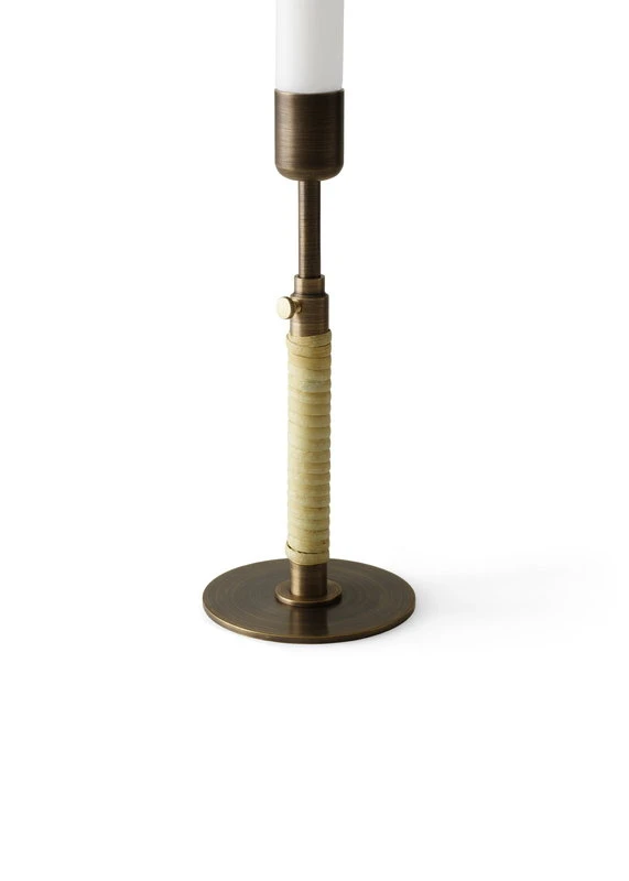 Menus Duca basiert auf kleinen, aber wirkungsvollen Designdetails wie der Rattanverzierung um die untere Hälfte des Messingfußes. Dieses dekorative Detail schafft einen interessanten, haptischen Kontrast zwischen den Materialien. Der Ständer verfügt außerdem über eine kleine Schraube, mit der Sie die Höhe des Kerzenhalters verstellen können. So können Sie schöne asymmetrische Kompositionen mit mehreren Kerzenhaltern oder anderen Dekorationsobjekten schaffen. Der Name Duca kommt vom lateinischen Wort für ‚erweitern‘.