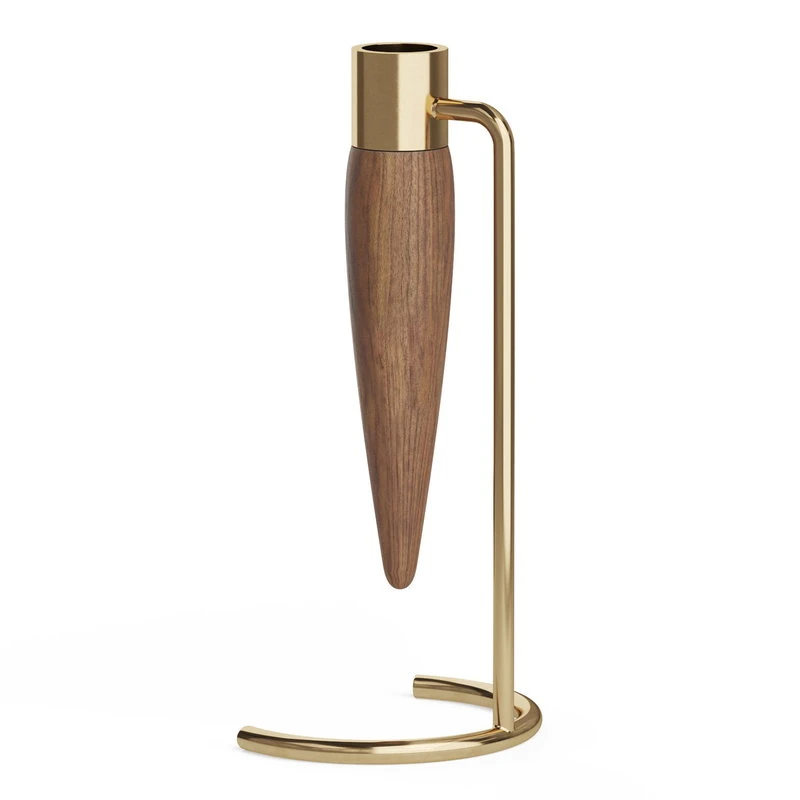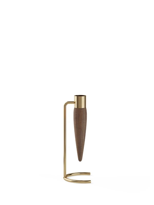 Der Umanoff-Kerzenhalter von Menu ist ein elegantes und zeitloses Dekorationselement. Der von Arthur Umanoff entworfene Kerzenhalter ist aus schönem Walnussholz und poliertem Messing gefertigt, das mit der Zeit auf einzigartige und schöne Weise patiniert. Der Kerzenhalter ist für eine einzelne Kerze konzipiert und schafft stimmungsvolle Wärme auf einem Tisch oder einer Fensterbank.