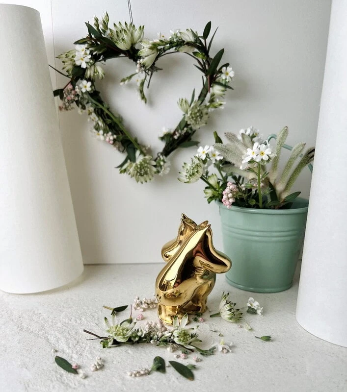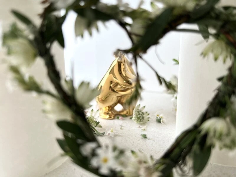 Die „Mumin und Snorkfräulein“-Figur von Skultuna ist Teil der „Mumin x Skultuna“-Kollektion. Tove Janssons beliebteste Mumin-Figuren erstrahlen in elegantem Gold: Die kleinen Skulpturen sind aus Stahl gefertigt und mit echtem 18-karätigem Gold überzogen. Die hochwertigen Materialien und die luxuriöse Verarbeitung machen die Figuren zeitlos und langlebig. Sie bringen eine Portion verspielte Eleganz in den Alltag, sowohl im Kinderzimmer als auch in anderen Räumen des Hauses. Veredeln Sie Ihren Schreibtisch auf verspielte Weise mit Ihren Lieblingsfiguren oder dekorieren Sie Ihr Bücherregal mit der gesamten Muminfamilie!