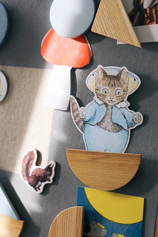Die von John Astbury entworfenen Magnete sind aus Eschenholz gefertigt und mit sicheren, ungiftigen Farben bemalt. Das Magnetset ist das perfekte Accessoire für die minimalistische Pinnwand, kann aber auch separat verwendet werden, zum Beispiel an der Kühlschranktür. Die passende Pinnwand ist separat erhältlich.